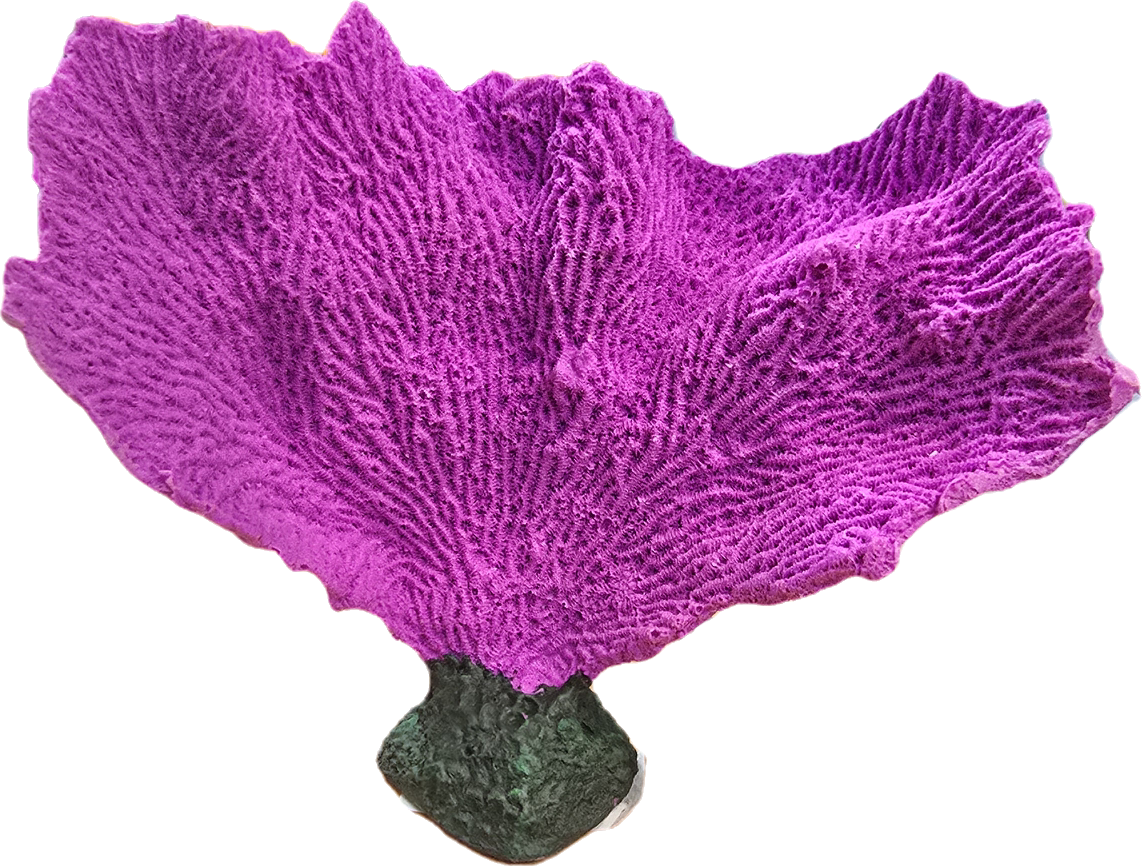 Аквариумная декорация в виде веерообразного коралла насыщенного фиолетового цвета. Детализированная рельефная поверхность создаёт эффект натурального морского коралла и красиво смотрится под аквариумным освещением. Прочная тёмная основа обеспечивает устойчивость, делая декорацию ярким акцентом и эффектным украшением подводного пейзажа