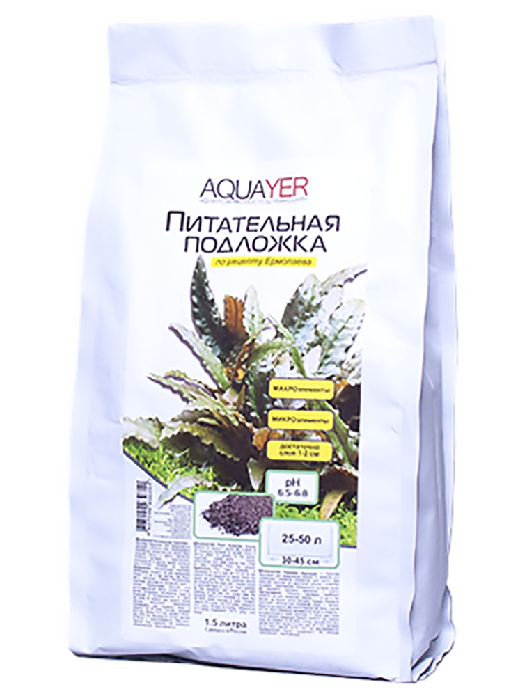 AQUAYER Питательная подложка - грунтовая подкормка для аквариумных растений с запасом всех необходимых питательных элементов для роста. Питательная подложка помогает аквариумным растениям преодолеть стресс при посадке на этапе запуска аквариума. Дает сильный толчок к росту растений, особенно кустовых – криптокорины, эхинодорусы и другие виды, которые предпочитают питание из грунта.