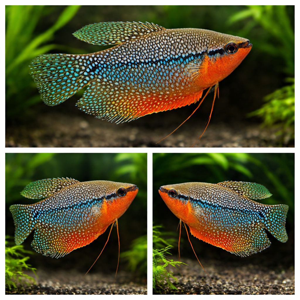 Гурами – пресноводные лабиринтовые рыбки, «фирменным знаком» которых являются брюшные плавники в виде длинных нитей. Эти самые нити являются у них органом осязания. Родина гурами — Юго-Восточная Азия и Индокитай. Часто можно видеть, как гурами ощупывают с помощью них стенки и декорации аквариума. Как и все представители лабиринтовых, гурами дышат атмосферным воздухом, поэтому аквариум не должен закрываться наглухо – под крышку всегда должен поступать свежий воздух. Гурами — одни из самых неприхотливых аквариумных рыбок, причем разводить их также легко, как и содержать. Размер тела всех видов гурами от 5 до 10 см, только змеевидный гурами может вырасти до 20см. Половые отличия этой рыбки выражены достаточно четко: самцы крупнее самок, ярче окрашены, их плавники длиннее (спинной плавник большой и вытянутый).