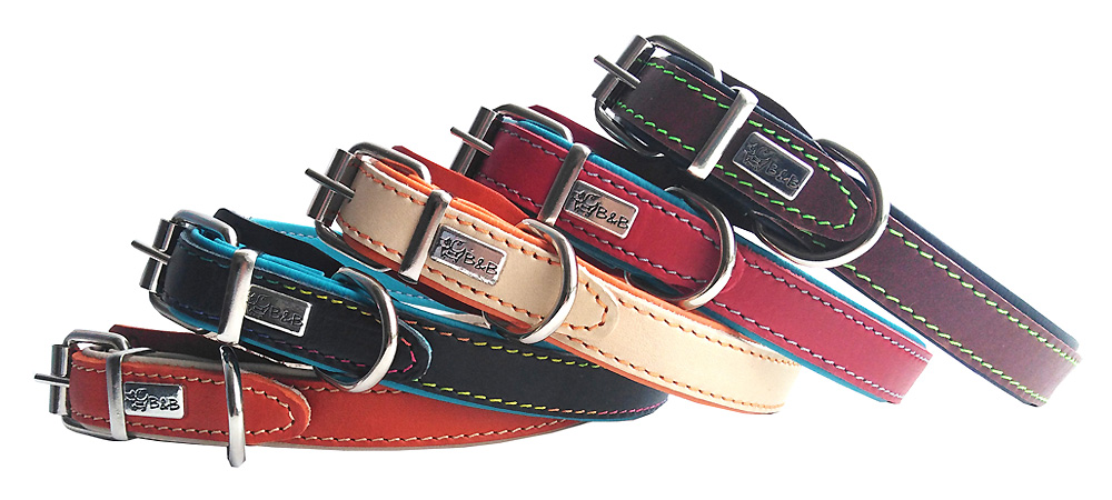 Ошейник из 3-х слоев кожи (верхний слой - натуральная кожа, низ - 2 слоя искусственной кожи), прошитый, края в загибку.