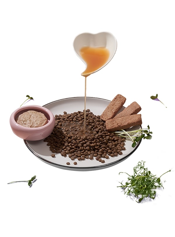 Состав: мясо индейки (в том числе свежее мясо индейки 26% и дегидратированное мясо индейки 5,5%), сорго, овёс, нут, дегидратированное мясо кролика (10%), гидролизованный белок индейки (4,5%), масло лосося (4%), семя льна, сушёный корень цикория, минералы, маннанолигосахариды, сушёная клюква, сушёный шпинат, сушёная брокколи, сушёная черника, глюкозамин (100 мг/кг), хондроитина сульфат (100 мг/кг), сушёные травы (юкка Шидигера, расторопша, Rosmarinus sp., Curcuma sp., Citrus sp., Eugenia sp.)