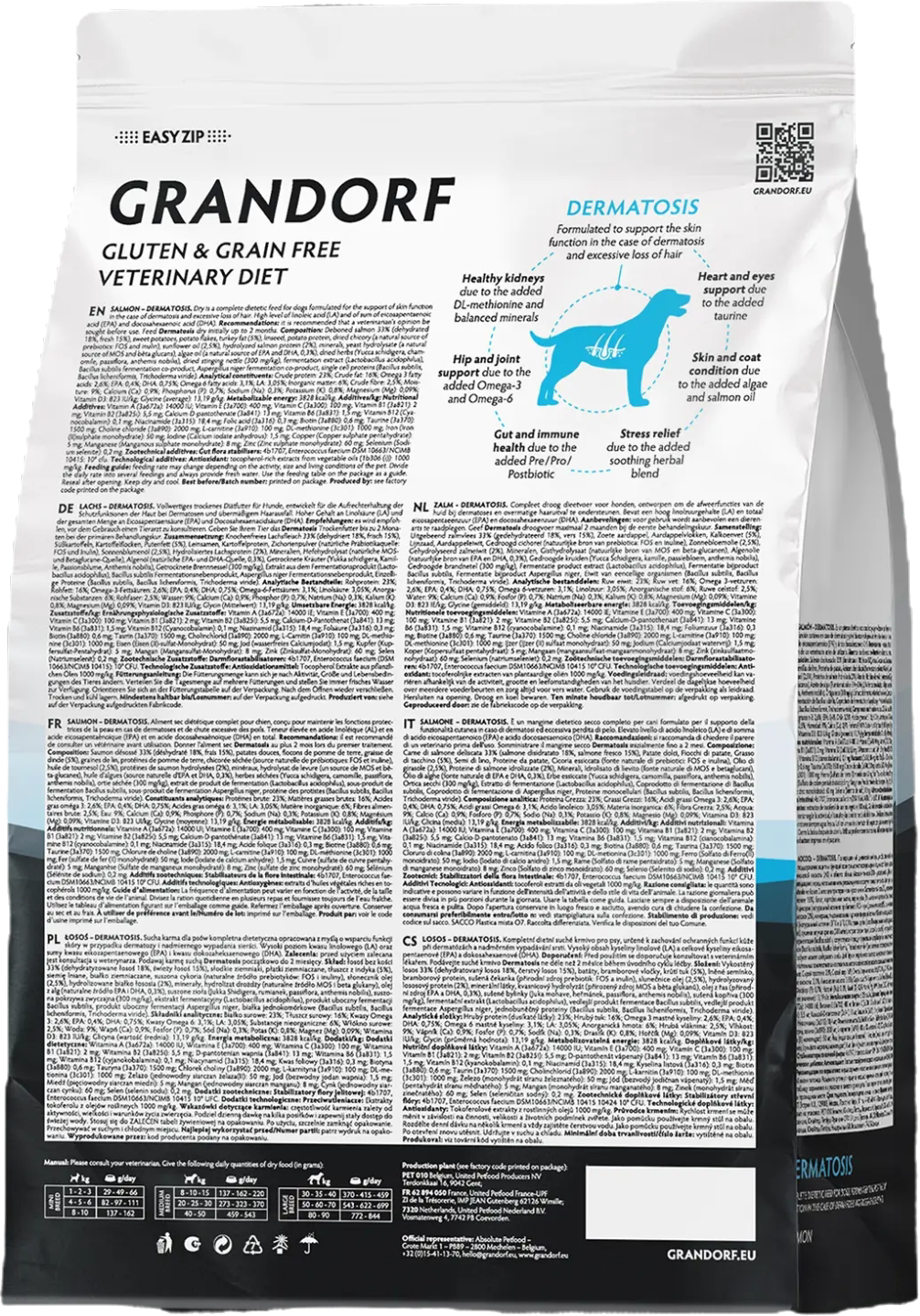 Полнорационный диетический корм для собак, предназначенный для поддержания защитных функций кожи при дерматозах и чрезмерном выпадении шерсти.