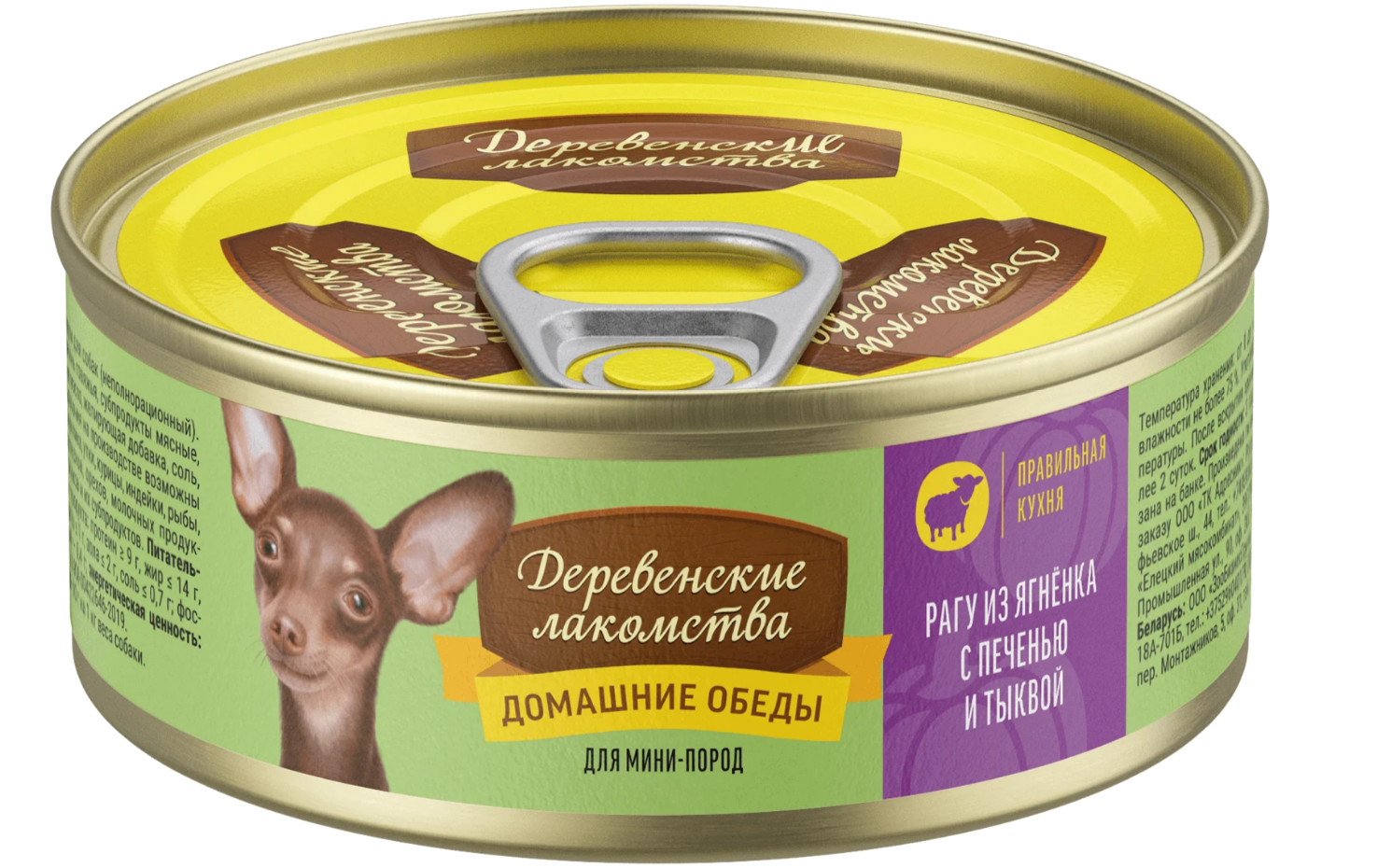 Деревенские лакомства консервы для собак Рагу из ягненка с печенью и тыквой 100 г