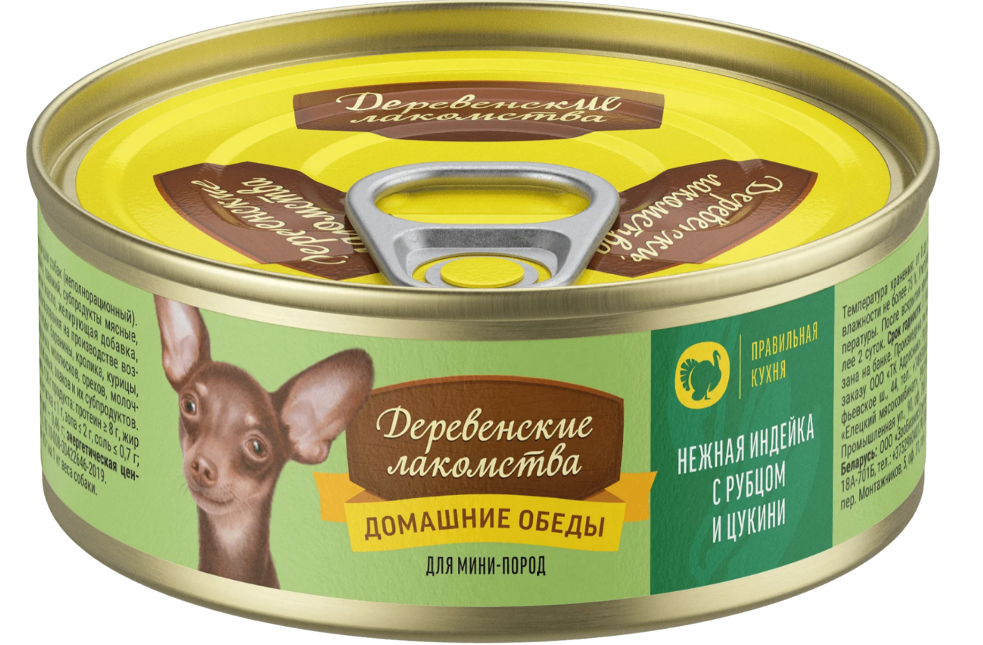Деревенские лакомства консервы для собак Индейка с рубцом и цукини 100 г