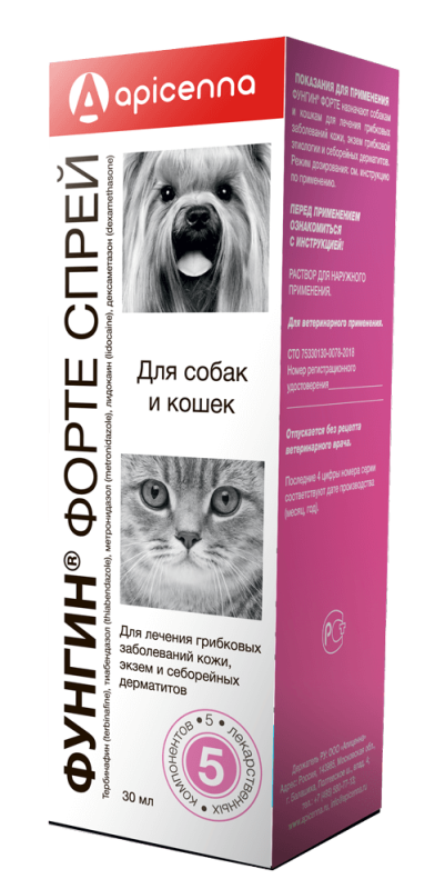 Назначают собакам и кошкам для лечения грибковых заболеваний кожи, экзем грибковой этиологии и себорейных дерматитов. Не подлежат обработке ослабленные животные, кормящие и беременные самки, а также щенки и котята моложе 4-недельного возраста. Фунгин Форте не предназначен для применения продуктивным животным.