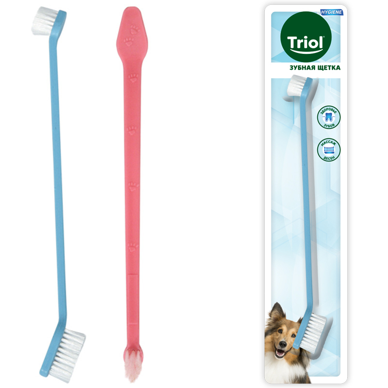 Двухсторонняя зубная щетка может применяться для чистки зубов более крупных собак. Щетка снабжена двумя чистящими головками разного размера, прикрепленными к длинной рукояти, надежно защищающей руки от клыков вашего питомца. Упаковка: блистер. Цвет: розовый, голубой. Размер 210*25*20мм.