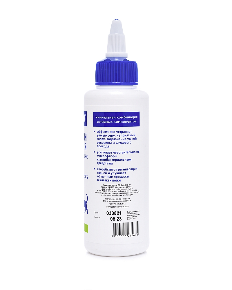Лосьон в количестве 3-5 капель закапывают в ухо животному , круговыми движениями массируют основание ушной раковины, затем ватным тампоном, смоченным в лосьоне, очищают внутреннюю поверхность ушной раковины и слуховой проход. При необходимости обработку повторяют. Регулярное применение лосьона снижает потенциальный риск воспаления наружного и среднего уха.