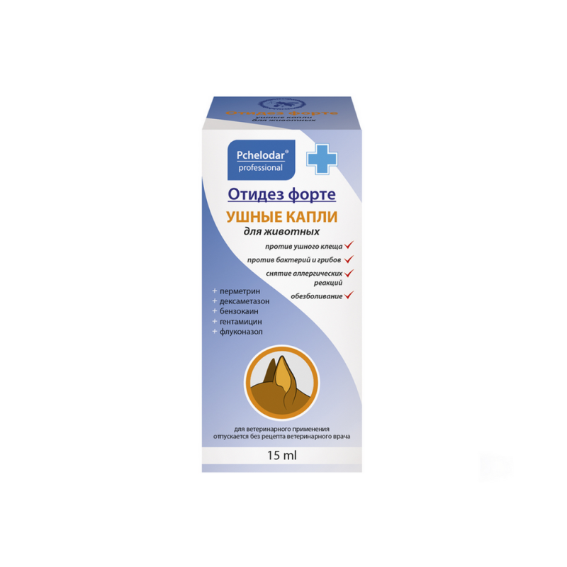 Отидез форте применяется для лечения острых и хронических форм отита, поверхностных дерматитов наружного уха и слухового прохода бактериальной, грибковой и паразитарной этиологии у собак, кошек и пушных зверей, для снятия проявлений аллергических реакций на коже в области уха и прилегающих к нему поверхностях.